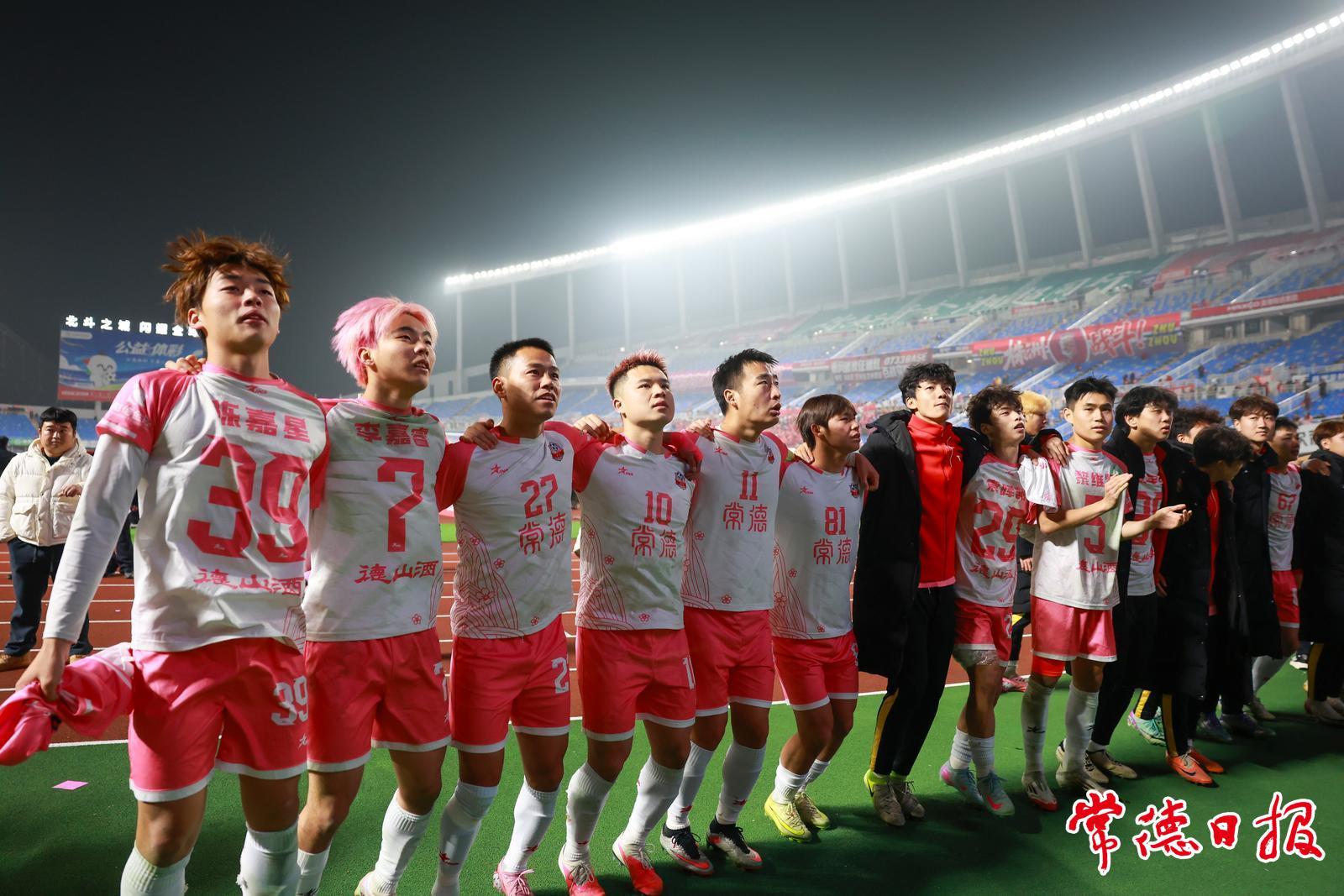 赛前,现场举行了精彩节目,向所有赛事服务保障人员致以敬意。比赛中,常德队门将王峰琦多次作出关键扑救,赵文荻、夏宇航等球员也屡屡突破防线。点球决胜阶段,王奎峰以一记巧妙的“勺子”点球锁定胜局,助力球队挺进决赛。整场比赛攻防转换迅速、对抗激烈,为观众呈现了一场精彩的足球盛宴。