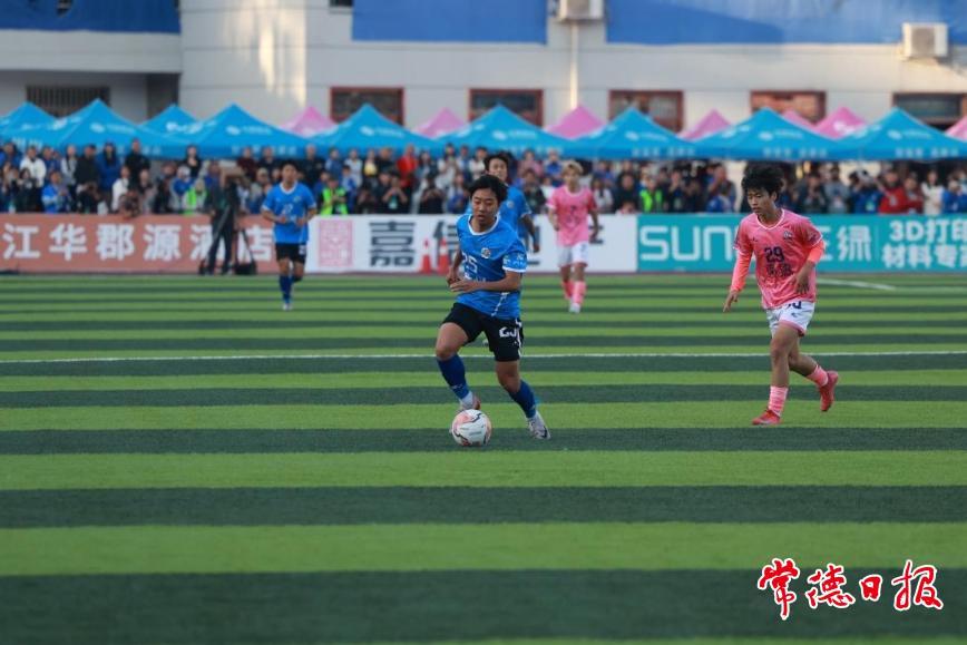 11月29日下午,2025湖南省足球联赛(“湘超”)第十二轮热血开赛,常德队客场对阵永州队。在先失一球的逆境中,凭借上半场10号赵文荻、下半场26号夏宇航的进球,常德队客场2:1逆转战胜永州队,取得价值连城的3分。