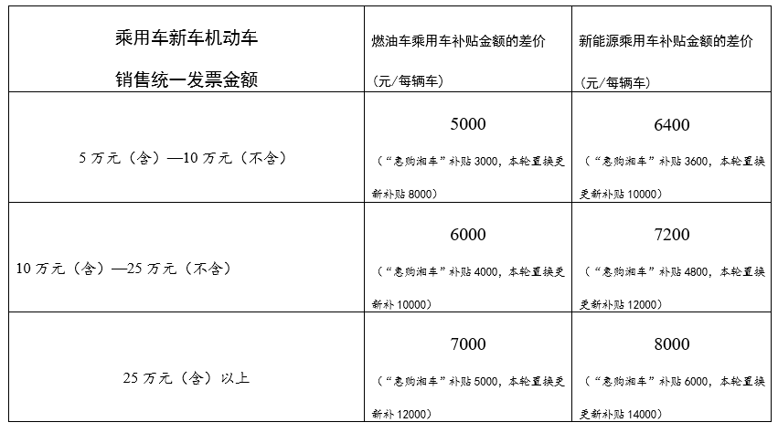 答:可以。对已参加2024“惠购湘车”省级置换更新并领取补贴的消费者,按本轮置换更新补贴标准补齐差价。