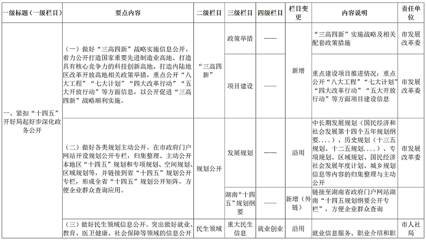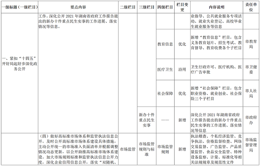 附件:最火的网络彩票平台推荐落实《湖南省2021年政务公开工作要点》责任分解表